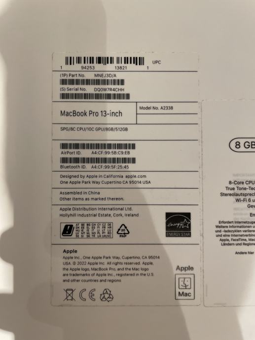Apple MacBook Pro 13-inch (A2338 - MNEJ3D/A)