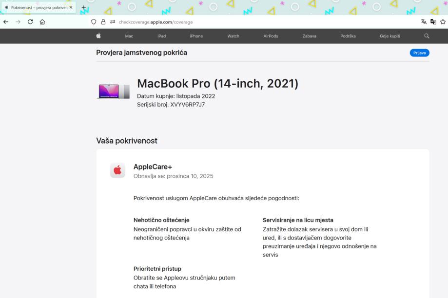 MacBook je kupljen u Njemačkoj u listopadu 2022 godine. Pod Apple jamstvom do 10-12-2025 godine.
