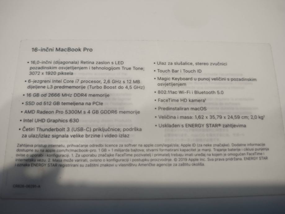 Prodajem Apple MacBook Pro 16" 2019 godište, u vrlo dobrom stanju 9/10.