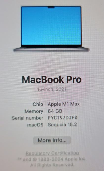 Prodajem Apple Macbook Pro 16'' M1 Max 64GB RAM/2TB SSD, u mint stanju ,boja Space Gray, posjedujem račun a cijena je snižena na 2350 Eura.