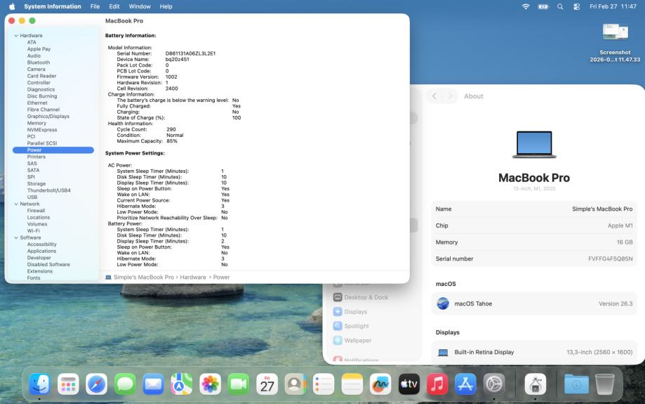 16GB RAM, 256GB SSD, baterija na 85%, cycle count 290.