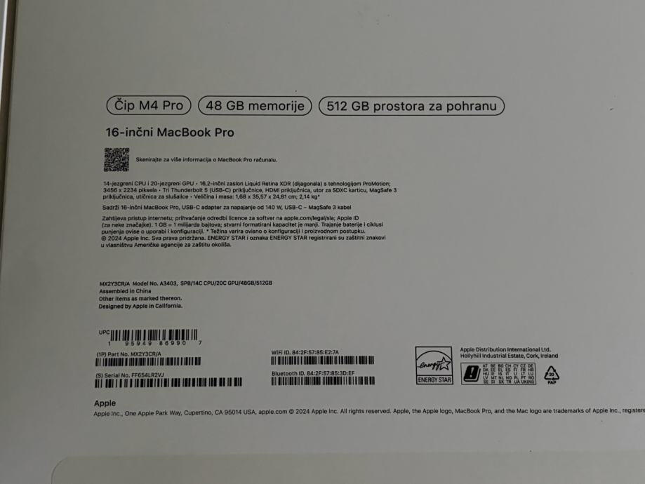 Prodajem Apple Macbook Pro M4 Pro 2025 48gb rama, 512gb memorije.