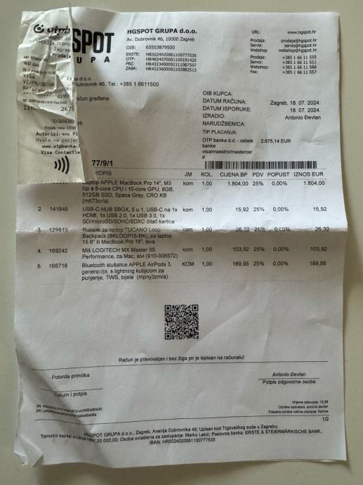 Kupljen u HGSpotu u Zagrebu, s računom i garancijom.