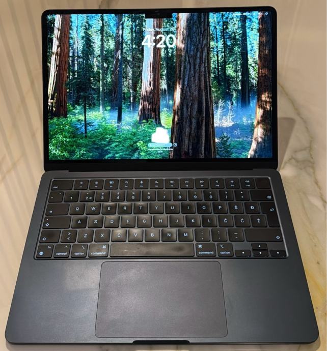 Prodajem rabljeni Apple MacBook Air s 13.6" zaslonom i M2 procesorom. Laptop dolazi s 8 Core CPU, 8 Core GPU, 8GB RAM-a i 256GB prostora za pohranu.