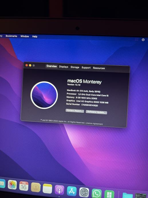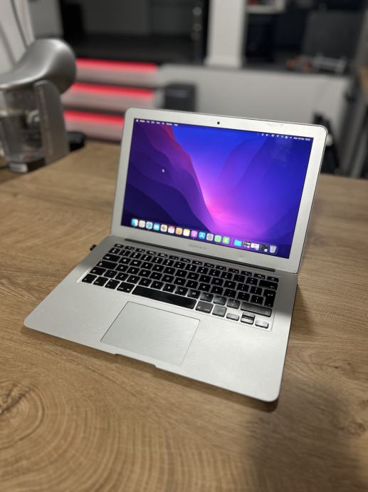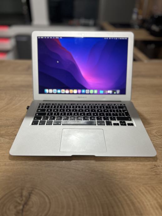 MacBook Air 13" i5, 8GB RAM, 128 GB SSD, instaliran Monterey 12.7.6 baterija ima 1000 ciklusa piše Service Recommended ali traje još uvjek oko 4 sata.Org Apple MagSafe 2 punjač 45w.