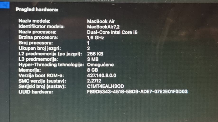 Prodajem Macbook Air, 2015. g, u besprijekornom stanju, sa originalnom kutijom, Dual-Core Intel i5, 8Gb, 128 Gb HDD