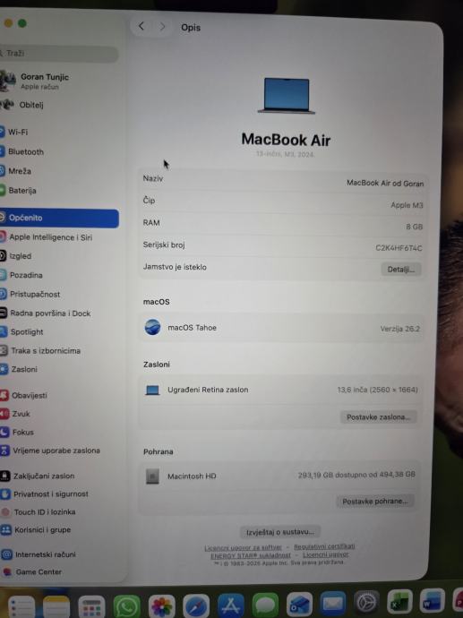 Prodajem MacBook Air 13 inča iz 2024. godine s M3 čipom u srebrnoj boji. Laptop radi besprijekorno, a M3 procesor omogućava izvrsne performanse za svakodnevne zadatke, video obradu i ostale zahtjevnije aplikacije. Ekran i kučište bez tragova korištenja. Baterija svega 25 ciklusa punjenja, a laptop je tih i efikasan kao što je i karakteristika Air modela.