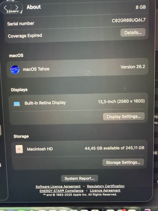 Prodajem MacBook Air M1 s 8GB RAM i 256 GB SSD prostora. Ima hrvatsku tipkovnicu. S njim dolazi originalni adapter i kabel za punjenje, i originalna kutija u kojoj je kupljen. Zdravlje baterije je 84%. Ima nekoliko crtica/ogrebotina koje su vidljive na slikama. Sve radi odlično i bez ikakve greške. Prodajem ga jedino zato što sam kupio novi M4 s više RAM-a i diskovnog prostora.