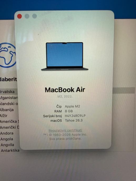Liquid Retina 13.6" display, CPU 8 core + 8 core GPU, 8GB of RAM, 256GB of SSD storage