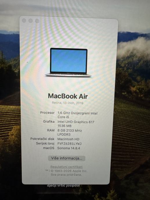 MacBook Air, izuzetno uščuvan i bez tragova korištenja, baterija samo 160/1000 ciklusa.