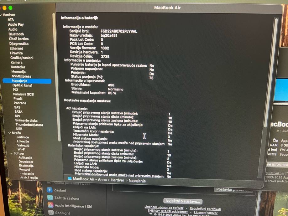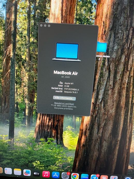Prodajem MacBook Air M1 (2020) – brz i stabilan Apple Silicon uređaj, pogodan za korištenje kao stolno računalo.