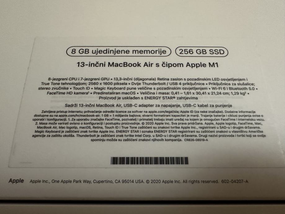 Prodajem Macbook Air M1 u osnovnoj konfiguraciji 8/256GB kupljen u 3.mj 2022. u Sancta Domenici.