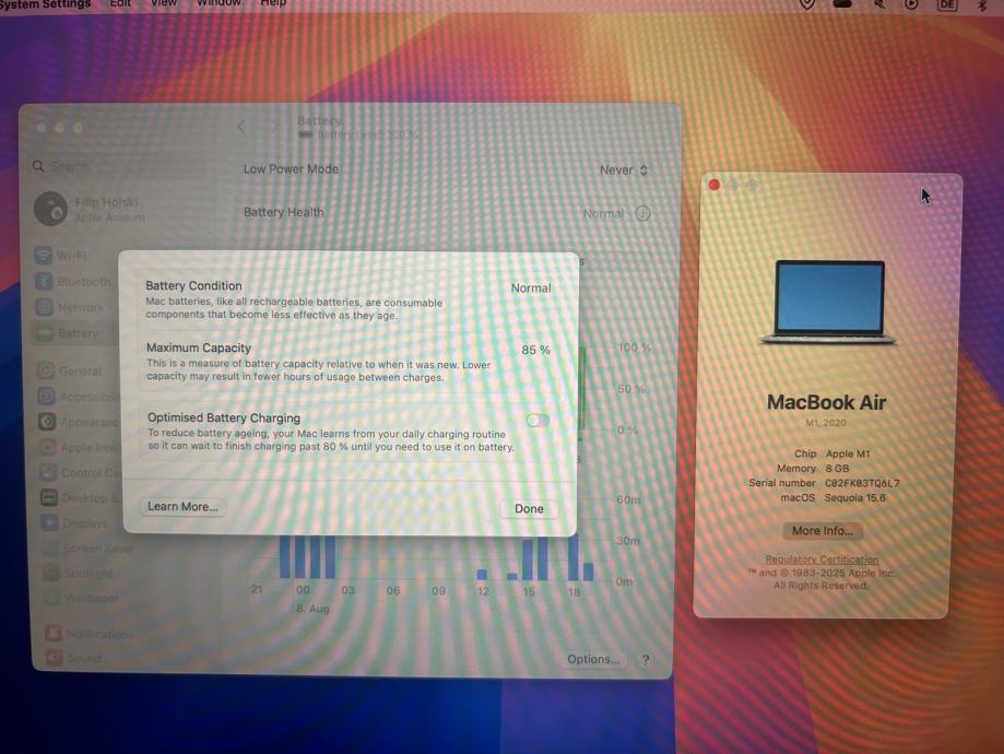 MacBook sa 8 core Apple M1 CPU, 8 gb RAM, 256gb SSD, kupljen 2021. Rabljeni sa vidljivim manjim oštećenjima, baterija je na 85% kapaciteta, ekran i tipkovnica u odličnom očuvanom stanju, tipke nisu izlizane kao sto zna biti na sličnim MacBook-ovima. Dolazi sa originalnom kutijom, kablom i punjačem. Cijena fixna.