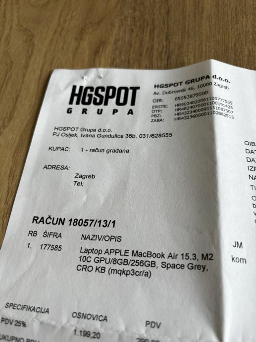 Prodajem MacBook Air s M2 procesorom, 15 inčnim ekranom, 8 GB RAM, 256 GB SSD kupljen u HG Spotu u Osijeku 15.12.2023. (račun i garancija idu priloženo).