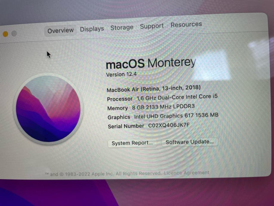 Macbook Air Retina (2018) 13-inch, 8gb RAM, 213 ciklusa punjenja, 128gb memorije + hub, sa punjačem. Bez kutije.