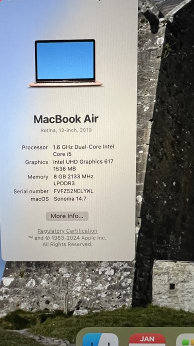 Prodajem MacBook Air iz 2019. godine, kupljen u Irskoj. Laptop je redovito korišten 5 godina, ali i dalje radi odlično. Prodajem ga jer mi je potreban uređaj s više memorije. Cijena je snižena sa 600 na 450 jer je baterija slabija pa možete kupit novu ako trebate.