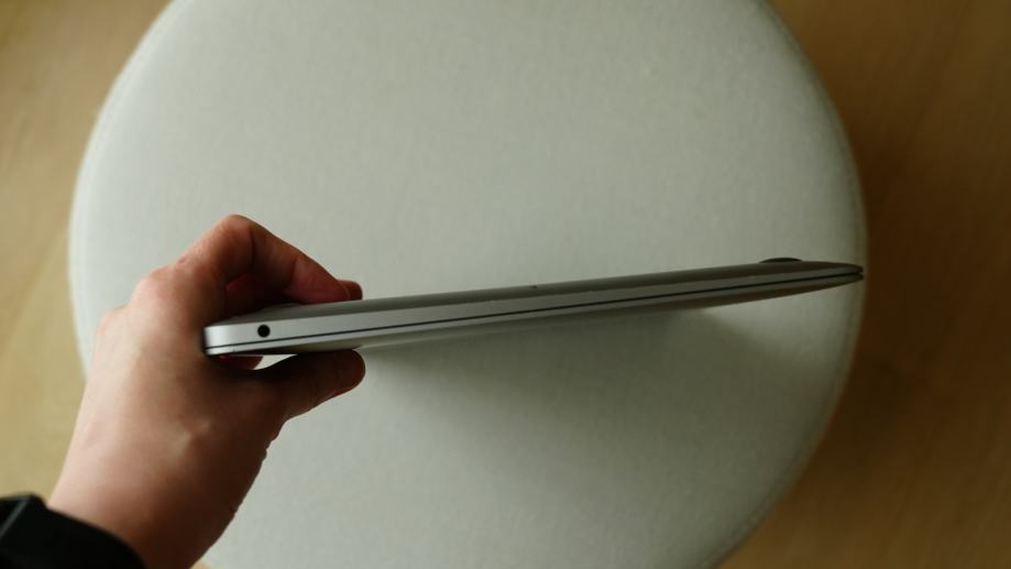 S prednje strane uz logo malo udubljenje. Laptop potpuno ispravan, ekran potpuno očuvan.