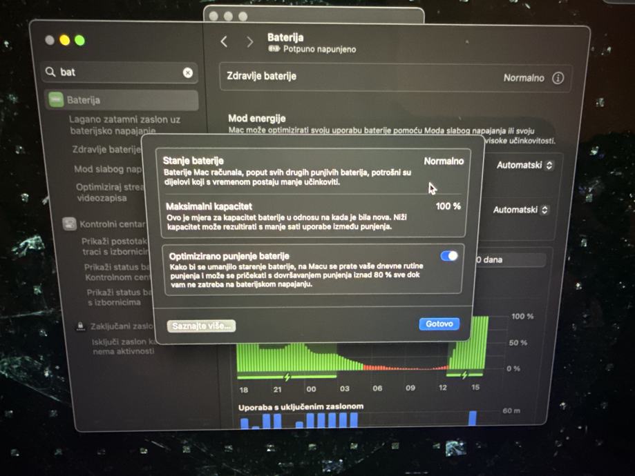 Punjen oko 15 ciklusa- baterija je 100%, te laptop nema ni jedan trag korištenj.