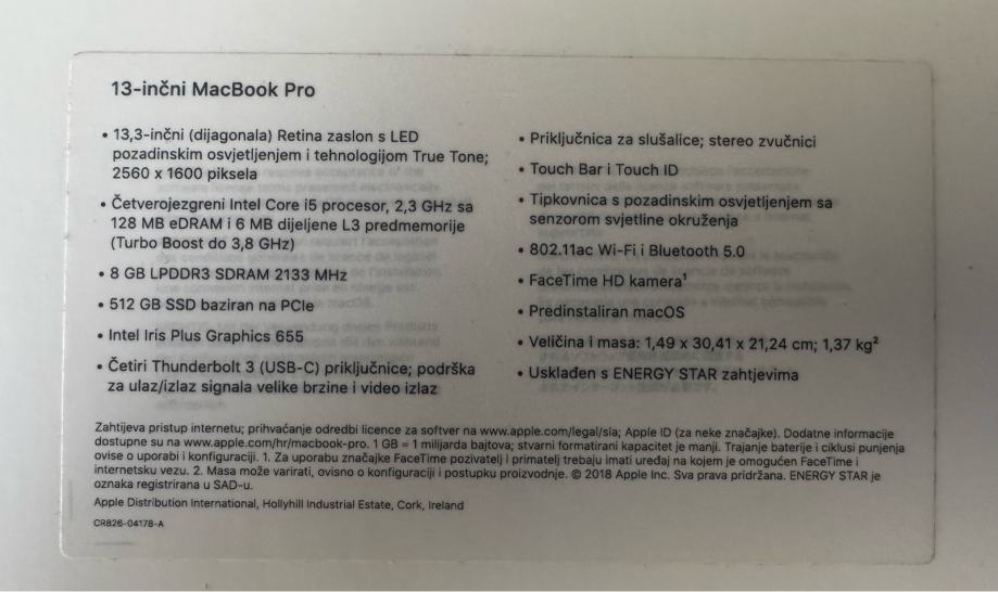 Prodaje se Macbook Pro 13" iz 2018. Laptop je izvrsno očuvan, baterija ima samo 297 ciklusa punjenja. Jako rijetko se koristi, što je i razlog prodaje.
