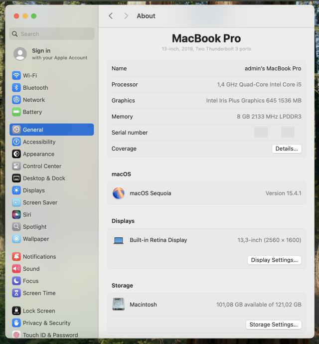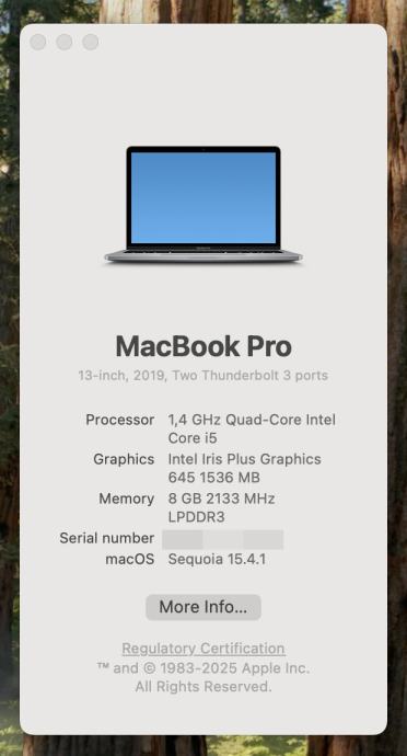 - Model: MacBook Pro 13" (2019)