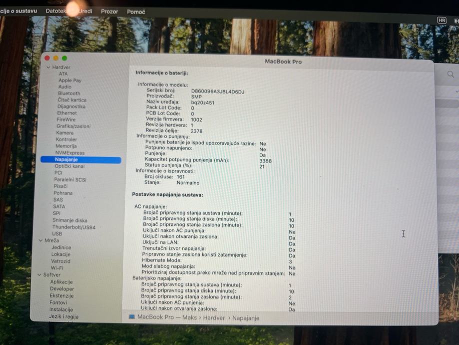 Baterija: 161 ciklus, stanje Normalno. (2x Thunderbolt 3)