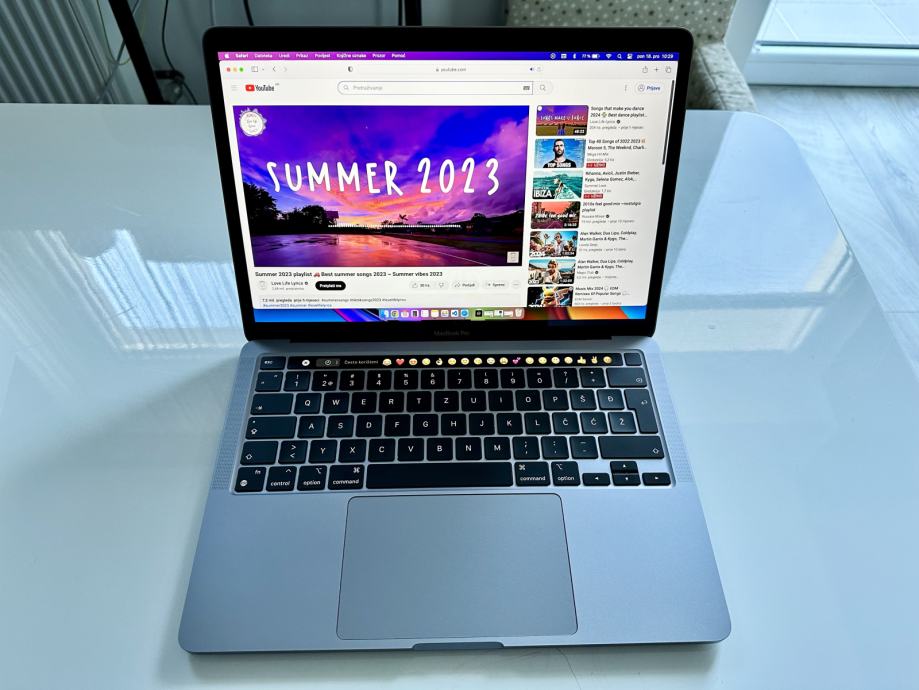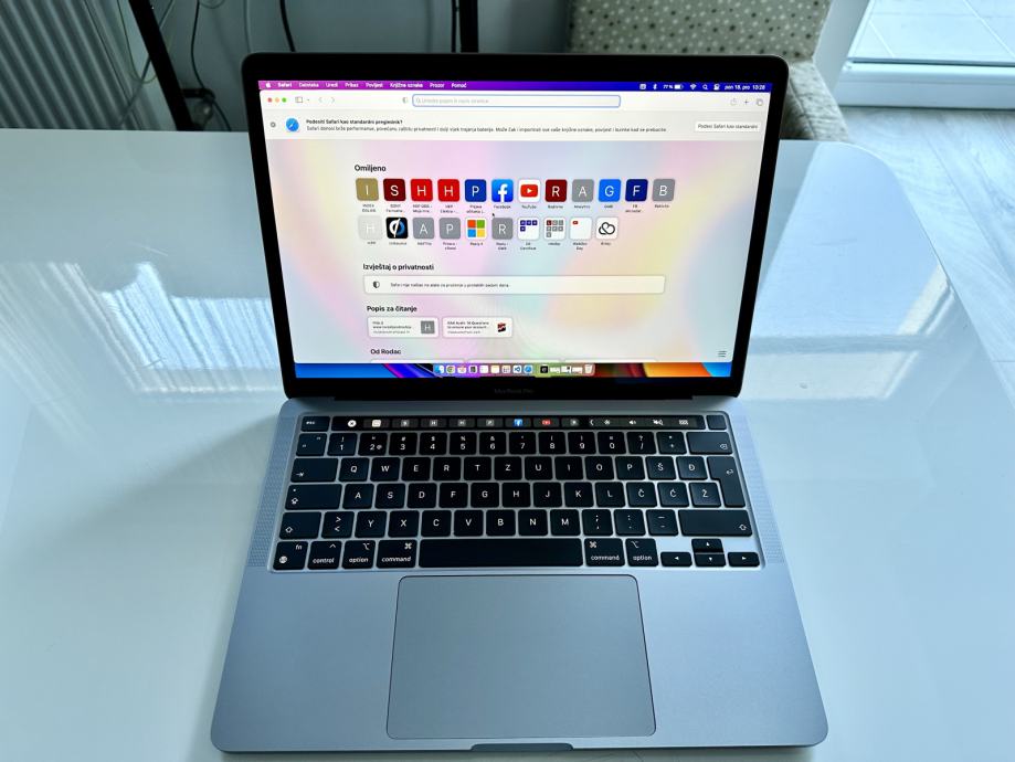 Laptop ima Touch bar i tipku za otisak prsta. Hrvatska tipkovnica.