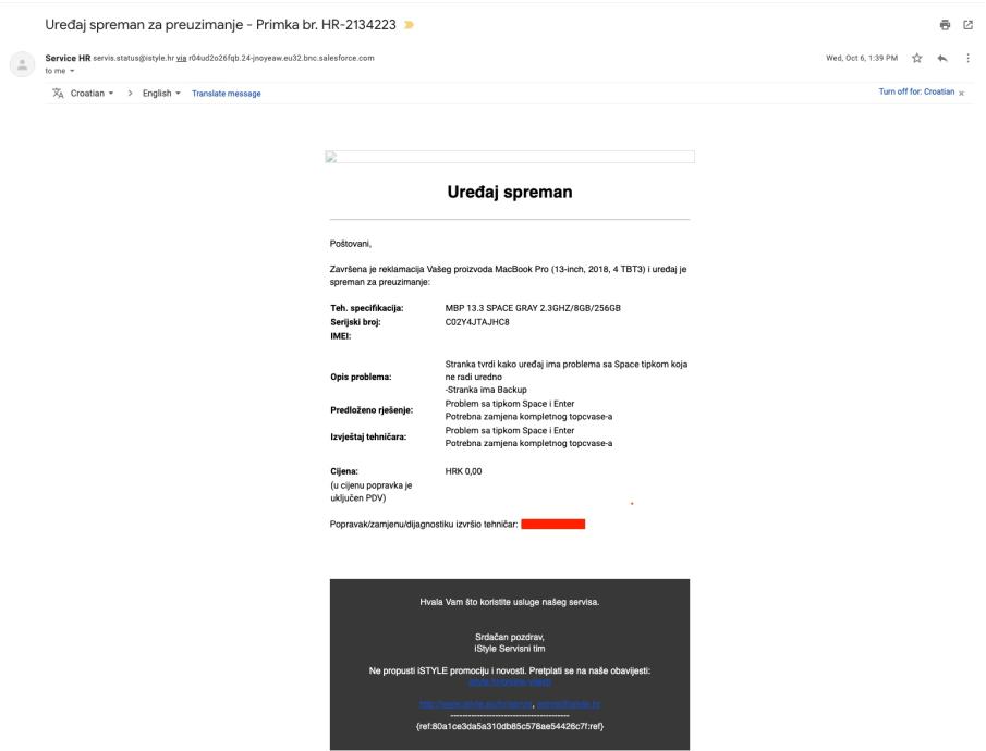 Laptop je bio korišten prvo poslovno, a zadnju godinu dana privatno.