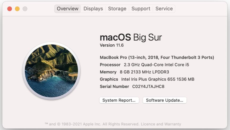 2,3GHz intel Core i5, 8GB RAM, 256GB Storage