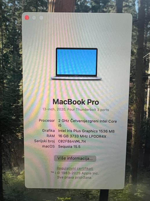 Ima Touch Bar, Touch ID i četiri Thunderbolt 3 porta. Radi na macOS Sequoia 15.5. Idealan je za uredski rad, programiranje i svakodnevnu multitasking upotrebu.