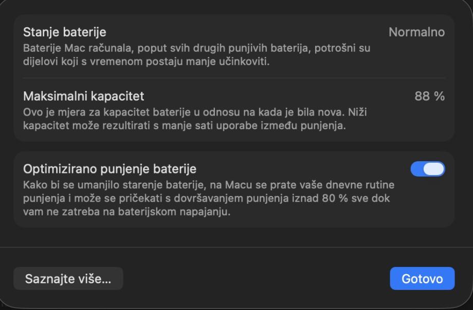 U savršenom stanju, zdravlje baterije na 88%.