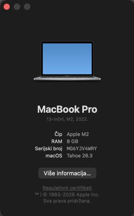 Prodajem Macbook Pro 13 M2, 8/256, kupljen 20.3.2023.
