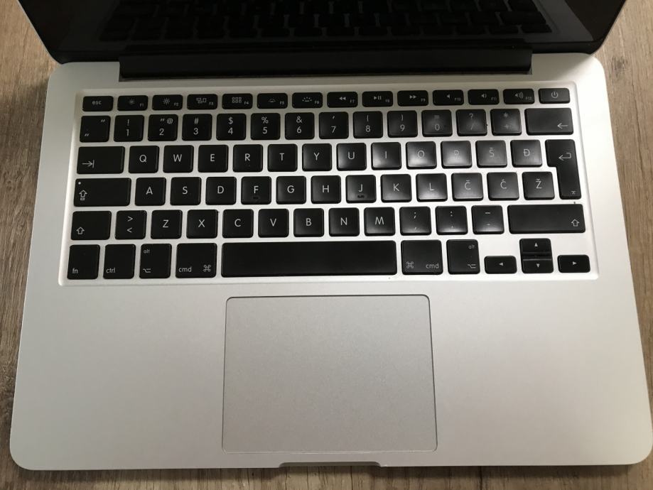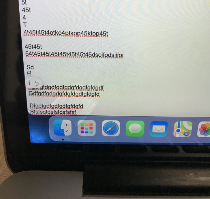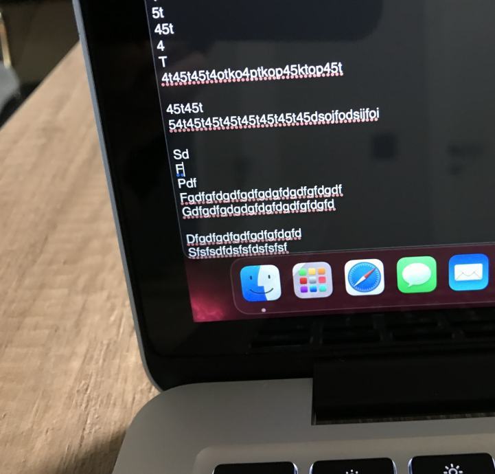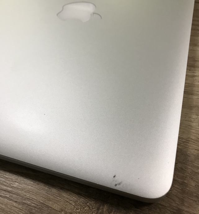 - mrlja i ogrebotina u donjem lijevom kutu, mrlja ne smeta previše jer aplikacije ne idu preko tog dijela ekrana (jer je Dock tamo), može smetati jedino ako se Dock stavi na desni dio desktopa. Što se tiće ogrebotine odmah iznad te mrlje, ona se dosta vidi na svijetlijoj pozadini, na tamnijoj se vidi puno manje.