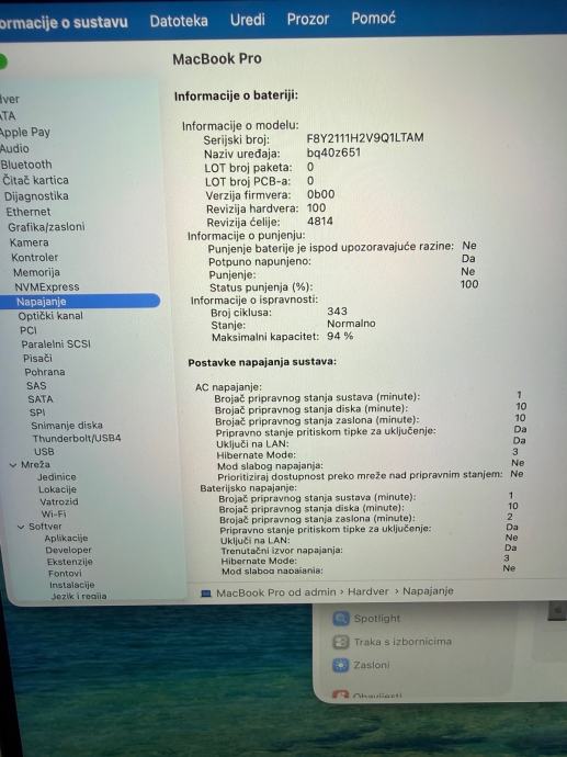 Macbook pro 14 2021 M1 procesor, 500GB flash memorije, baterija 94% , dolazi sa punjačem, laptop je kao nov!