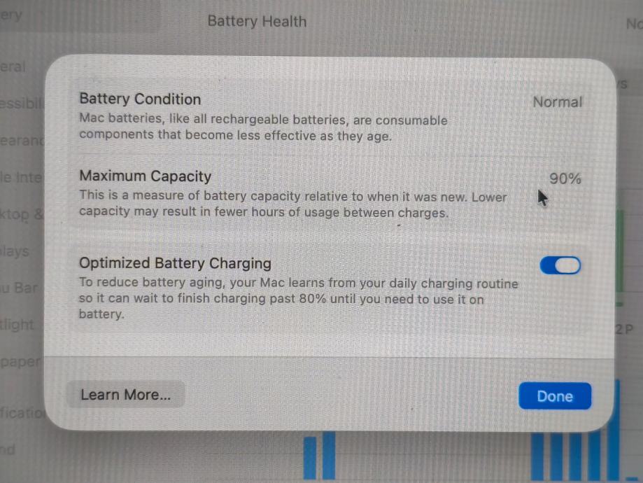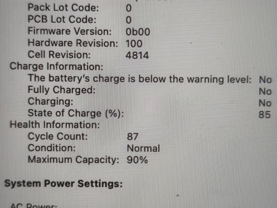 90% baterija, 87 ciklusa