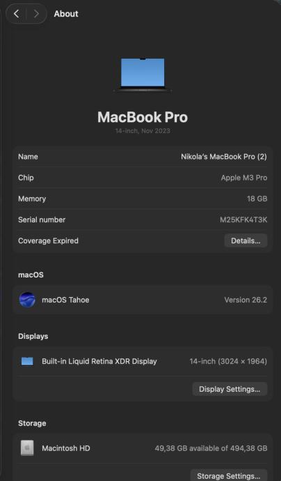 • Sustav: macOS Sequoia 26.2