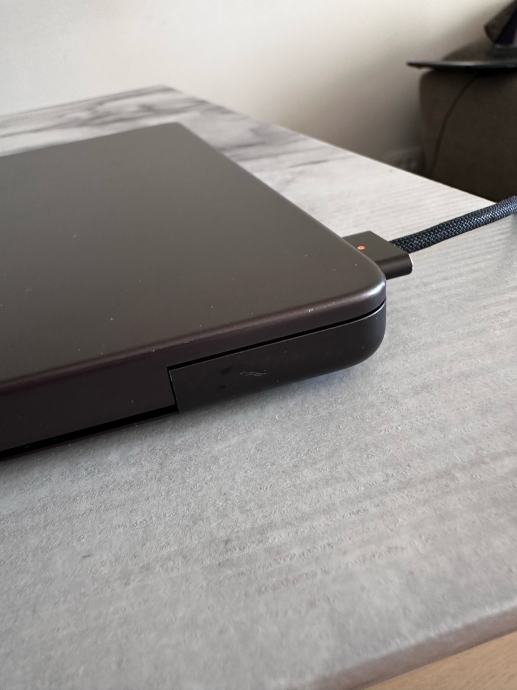 Laptop je pažljivo korišten i vrlo dobro održavan. Na stražnjoj strani nalazi se mala udubina (vidljiva na fotografiji), koja ni na koji način ne utječe na rad uređaja.