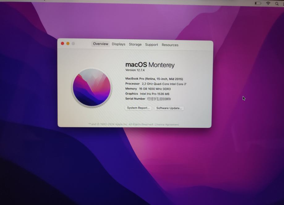 - Model: MacBook Pro 15" Retina, Mid 2015
