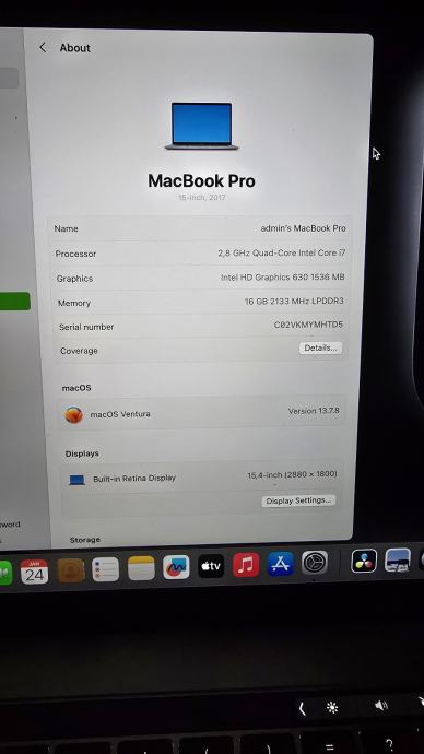 MacBook Pro 15” (2017) | i7 | 16 GB RAM | Retina | macOS Ventura