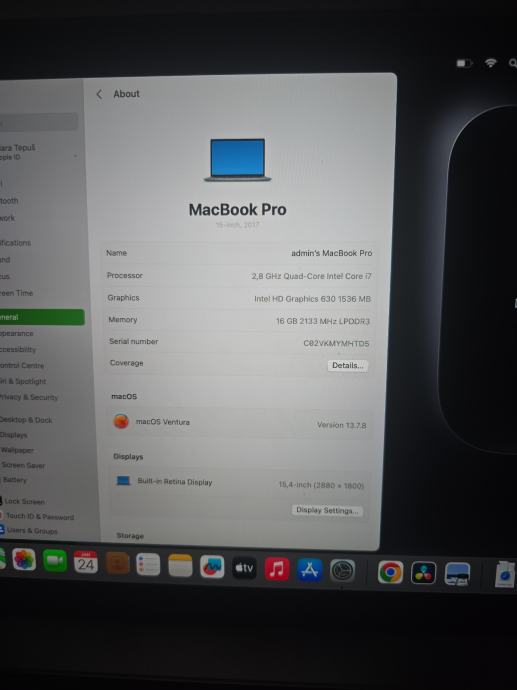 Operativni sustav: macOS Ventura 13.7.8