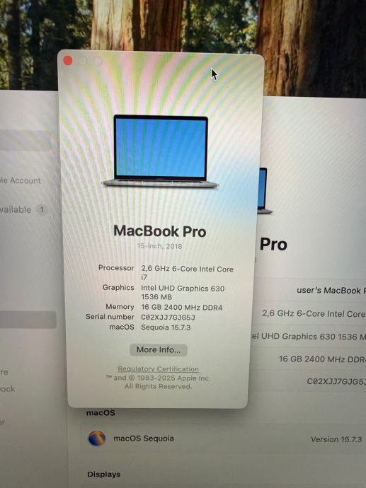 Macbook pro 15 i7 procesor, 16 gb rama,disk 500 gb , ima novu bateriju 3 ciklusa punjenja, cijena je takva samo jer ima trag od naljepnice , bila bi viša, sve radi savršeno, dolazi sa originalnim punjačen.