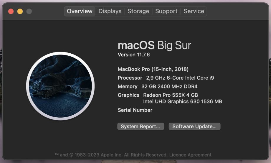 Procesor: 2,9 GHz 6-Core Intel Core i9
