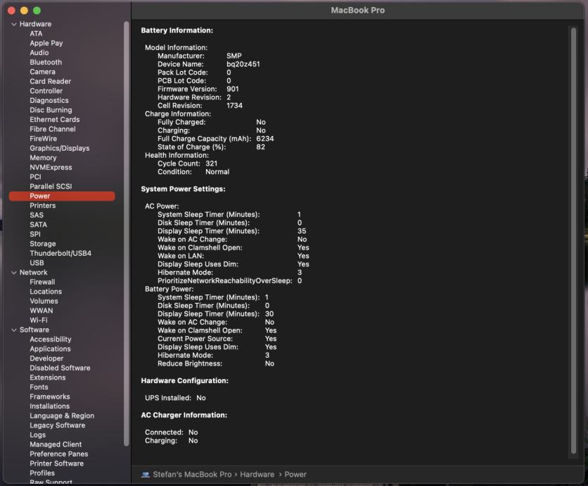 CTO model sa 32GB RAM-a, baterija je na 321/1000 ciklusa, zdrava.