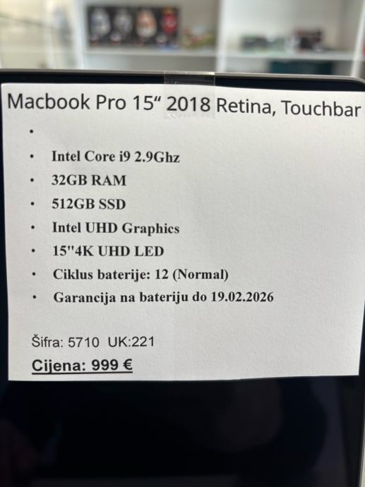 Macbook Pro 15“ 2018 Retina, Touchbar, i9, 32GB RAM, 512GB SSD, R1