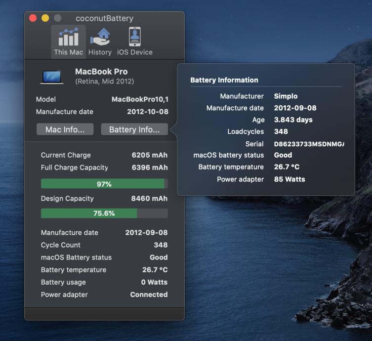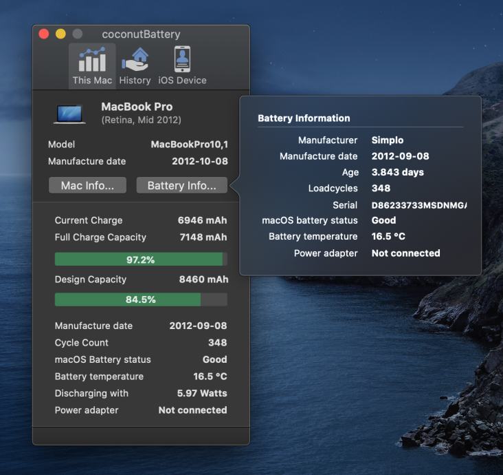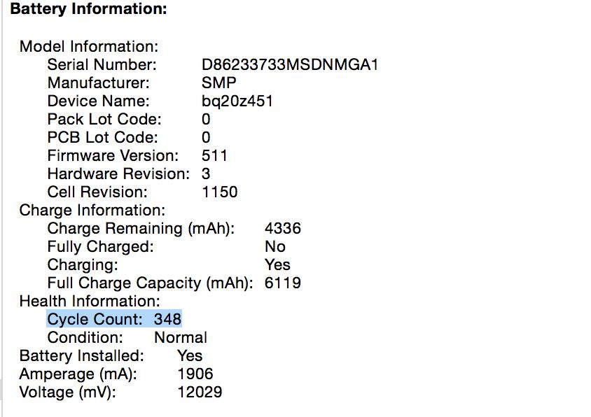 Cycle Count: 348 punjenja baterije