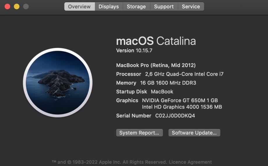 - instaliran macOS Catalina Version 10.15.7