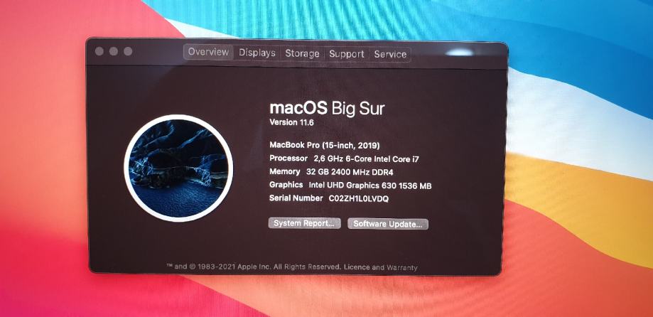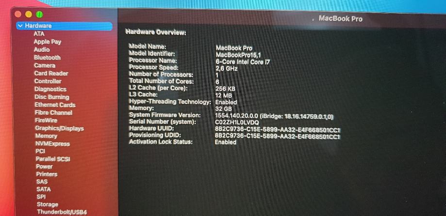 MacBook Pro 15" - Core i7 2,6 GHz; 32GB RAM; 1 TB SSD; 4GB Radeon Pro
