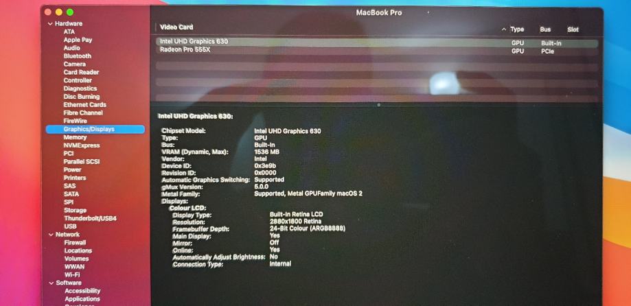 - Radeon Pro 555X (4 GB) + Intel UHD Graphics 630 (1,5GB) integrirana graficka