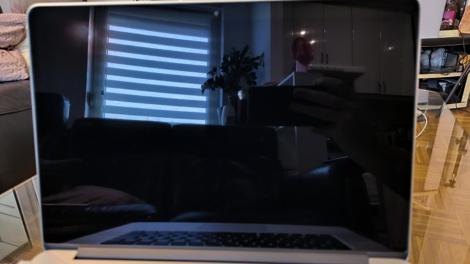 U ljevom gornjem cosku pokazala se blaga "delaminacija" anti glare zastite, poznata boljka tog modela, ali ne utjece na rad laptopa tj ekrana, kao sto mozete vidjeti sa slika, te kad je upaljen ekran to se ni ne primjecuje. Takvog sam ga i ja kupio, te se nije prosirivalo od tad, tako stoji.