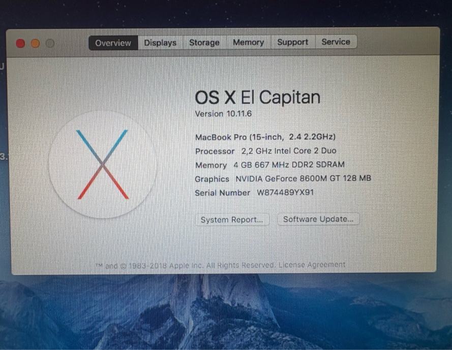 Dolazi s dva hard diska (500 GB + 320 GB). Instaliran OS X 10.11.6 El Capitan – spreman za korištenje.