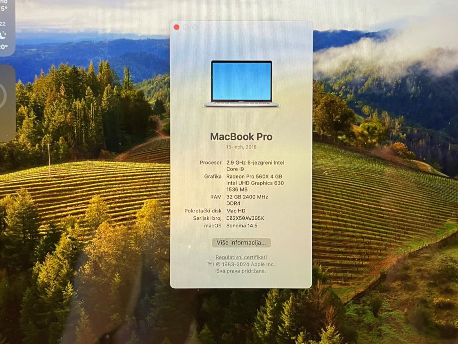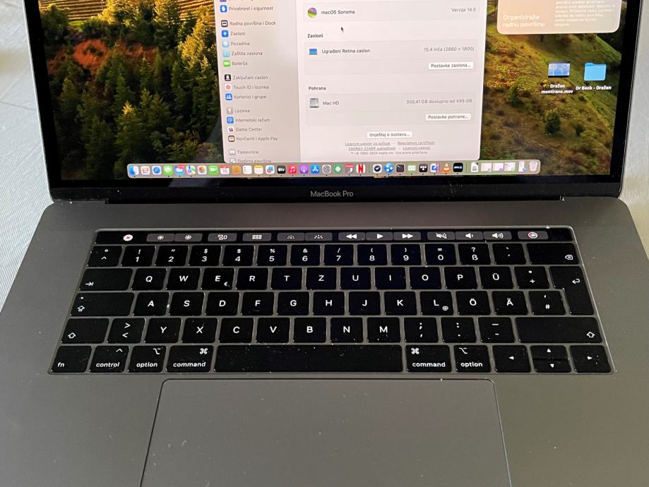 MacBook Pro 15,4" u izvrsnom stanju. Intelov procesor I9 2,9 GHz, 32 GB RAM-a i 1 TB SSD disk. Touchbar